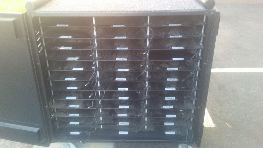 The EarthWalk laptop charging cart securely stores and charges up to 36 Laptops. This charging cart ...